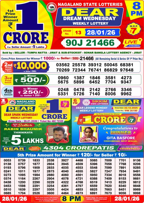 Dear Lottery 8pm Result 28.01.26