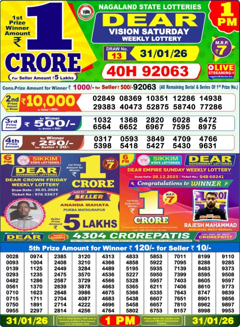 Dear Lottery 1pm Result 01.02.26