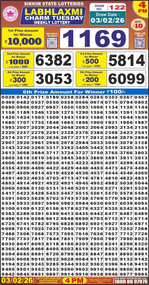 Labh Laxmi Lottery 4pm Result 03.02.26