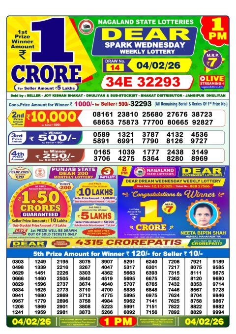 Dear Lottery 1pm Result 04.02.26
