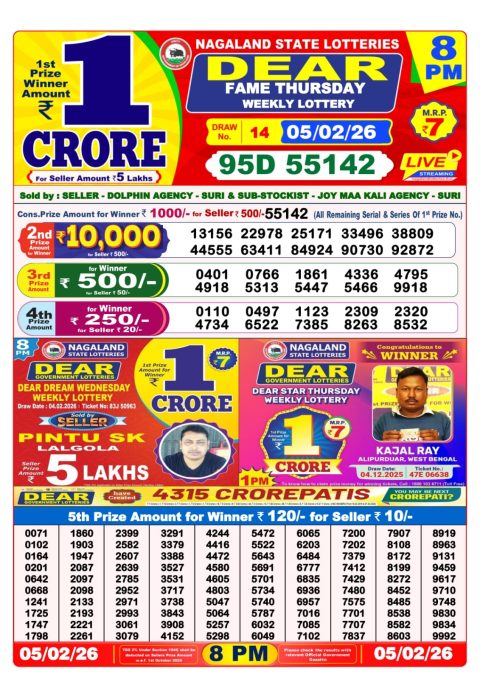 Dear Lottery 1pm Result 05.02.26