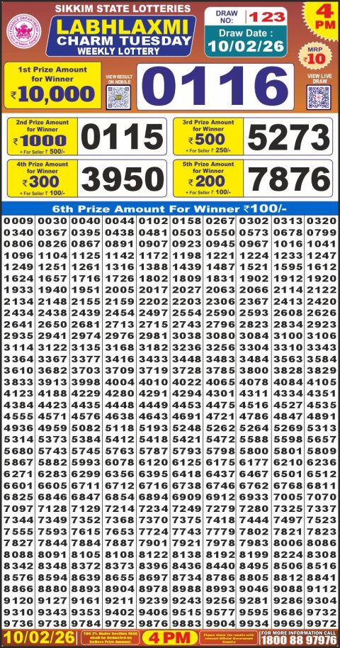 Labh Laxmi Lottery 4pm Result 09.02.26