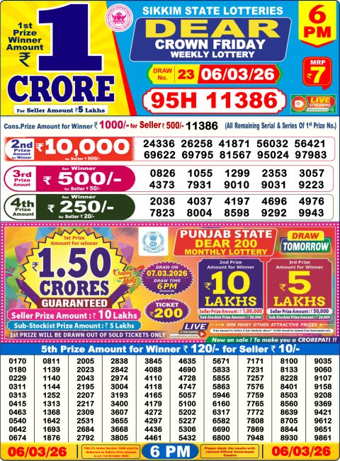 Dear Lottery 6pm Results 06.03.26
