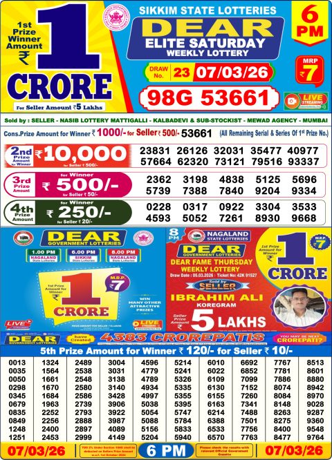 Dear Lottery 6pm Results 07.03.26