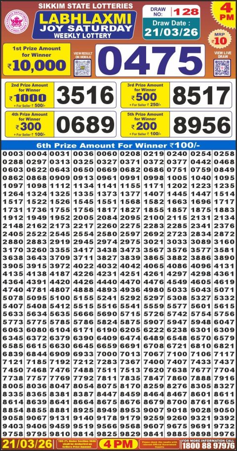 Labh Laxmi Lottery 4pm Result 21.03.26