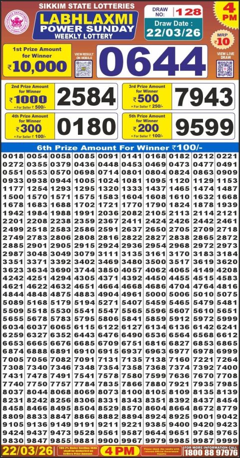 Labh Laxmi Lottery 4pm Result 22.03.26