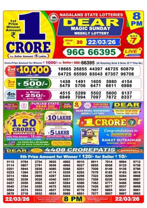 Dear Lottery 6pm Results 22.03.26