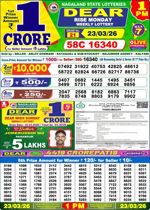 Dear Lottery 1pm Result 23.03.26