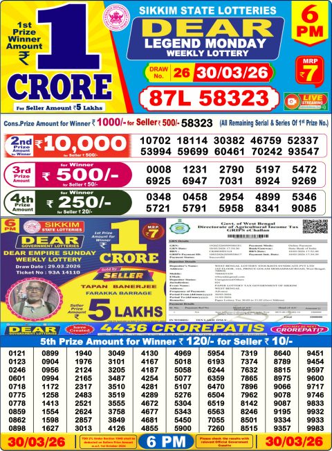 Dear Lottery 6pm Results 30.03.26