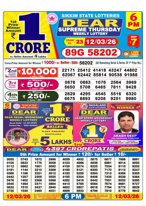 Dear Lottery 6pm Results 18.01.26