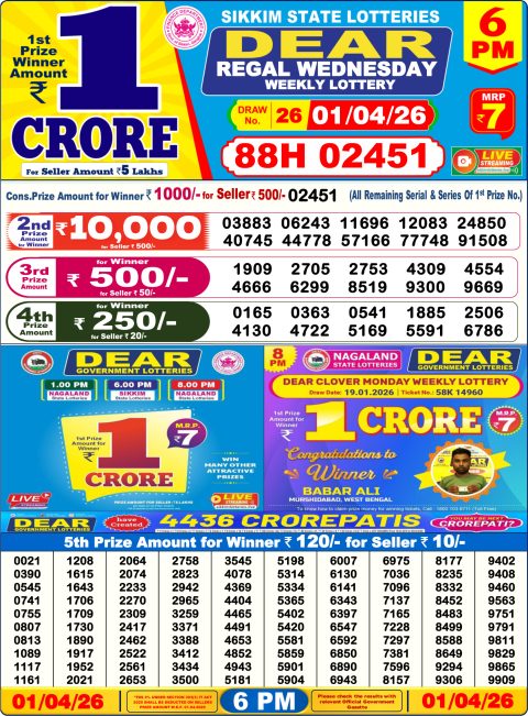Dear Lottery 6pm Results 01.04.26
