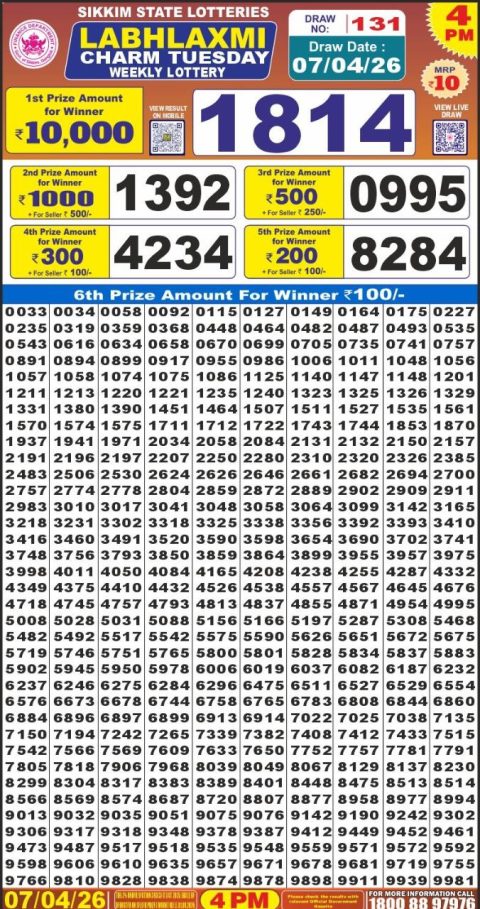 Labh Laxmi Lottery 4pm Result 07.04.26