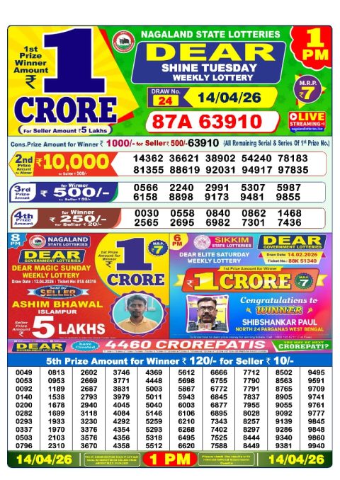 Punjab State Dear 50 Lottery 5pm Result 14.04.26