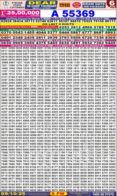 Punjab State Dear 50 Lottery 6pm Result 09.10.25