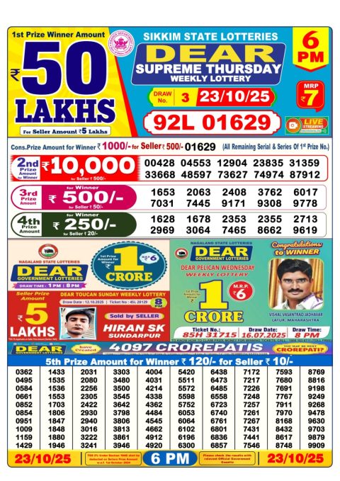 Punjab State Dear 50 Lottery 6pm Result 23.10.25
