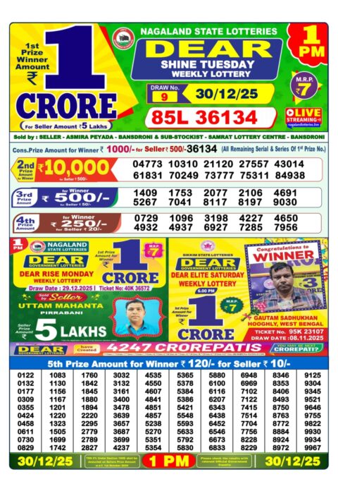 Punjab State Dear 50 Lottery 6pm Result 30.12.25