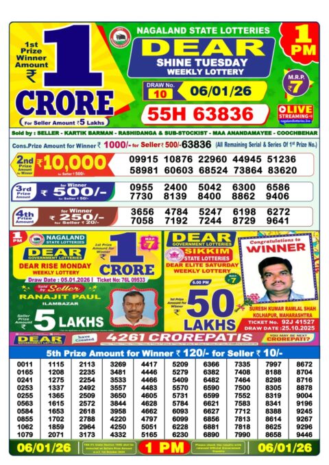 Dear Lottery 1pm Result 06.01.26