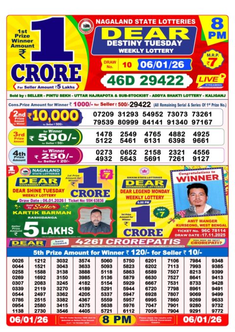 Dear Lottery 6pm Results 06.01.26
