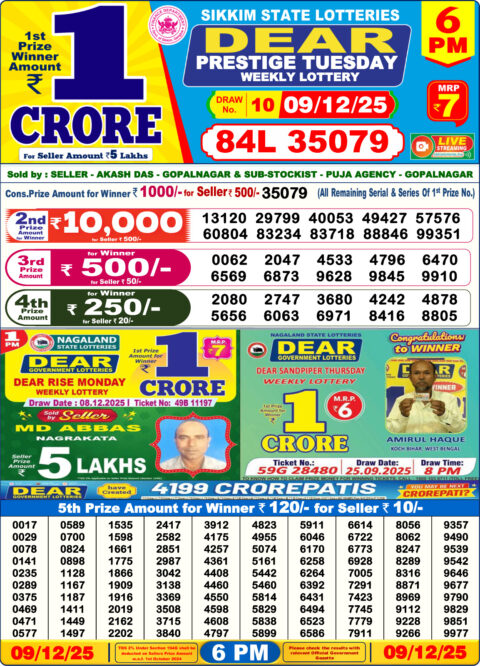 2025-12-12 Dear Lottery 8pm Result 12.12.25  2025-12-12 Dear Lottery 6pm Results 12.12.25  2025-12-12 Punjab State Dear 50 Lottery 6pm Result 12.12.25  2025-12-12 Labh Laxmi Lottery 4pm Result 12.12.25  2025-12-12 Dear Lottery 1pm Result 12.12.25  2025-12-11 Dear Lottery 8pm Result 11.12.25  2025-12-11 Dear Lottery 6pm Results 11.12.25  2025-12-11 Punjab State Dear 50 Lottery 6pm Result 11.12.25  2025-12-11 Labh Laxmi Lottery 4pm Result 11.12.25
