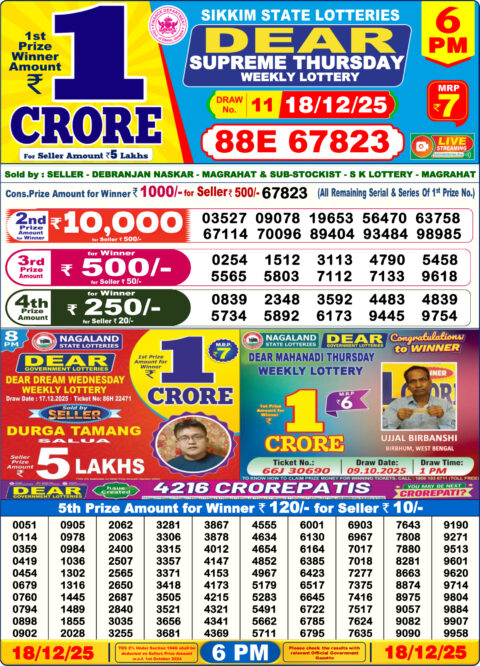 2025-12-23 Dear Lottery 8pm Result 23.12.25  2025-12-23 Dear Lottery 6pm Results 23.12.25  2025-12-23 Punjab State Dear 50 Lottery 6pm Result 23.12.25  2025-12-23 Labh Laxmi Lottery 4pm Result 23.12.25  2025-12-23 Dear Lottery 1pm Result 23.12.25  2025-12-22 Dear Lottery 8pm Result 22.12.25  2025-12-22 Dear Lottery 6pm Results 22.12.25  2025-12-22 Punjab State Dear 50 Lottery 6pm Result 22.12.25  2025-12-22 Labh Laxmi Lottery 4pm Result 22.12.25