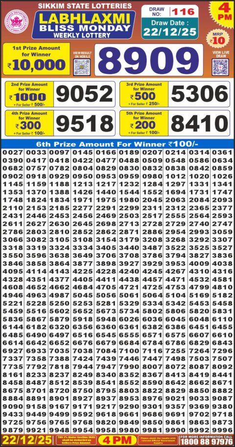 Labh Laxmi Lottery 4pm Result 22.12.25