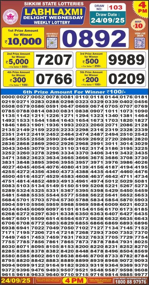 Labh Laxmi Lottery 4pm Result 24.09.25