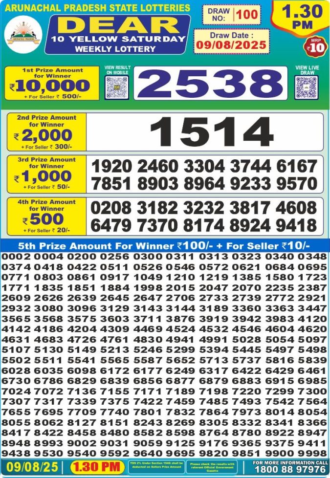 Dear 10 Lottery 1.30pm Result 09.08.25 Leave a Comment on Dear 10 Lottery 1.30pm Result 09.08.25 Spread the love