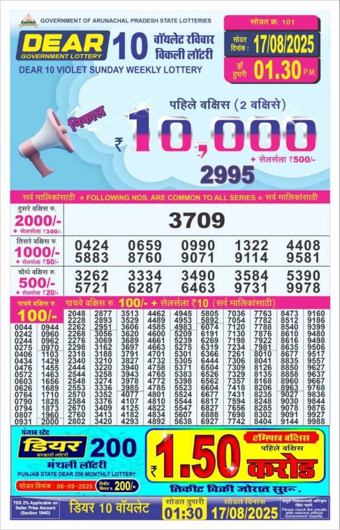Dear 10 Lottery 1.30pm Result 17.08.25 Leave a Comment on Dear 10 Lottery 1.30pm Result 17.08.25 Spread the love
