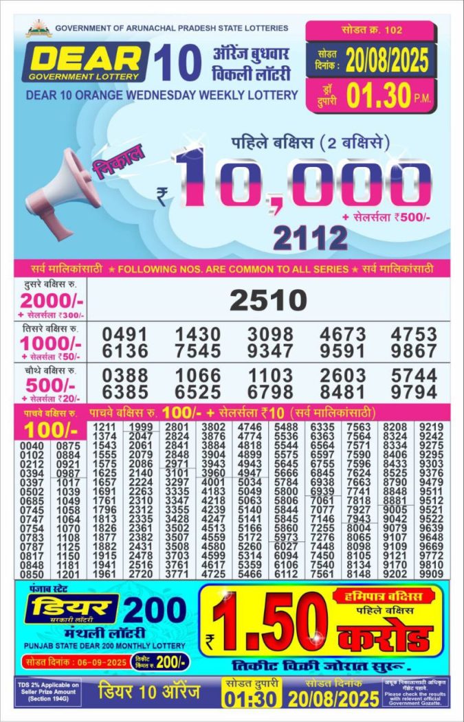 Dear 10 Lottery 1.30pm Result 20.08.25 Leave a Comment on Dear 10 Lottery 1.30pm Result 20.08.25 Spread the love
