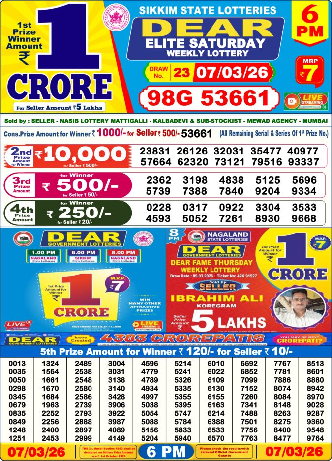 Dear Lottery 6pm Results 07.03.26 Leave a Comment on Dear Lottery 6pm Results 07.03.26 Spread the love