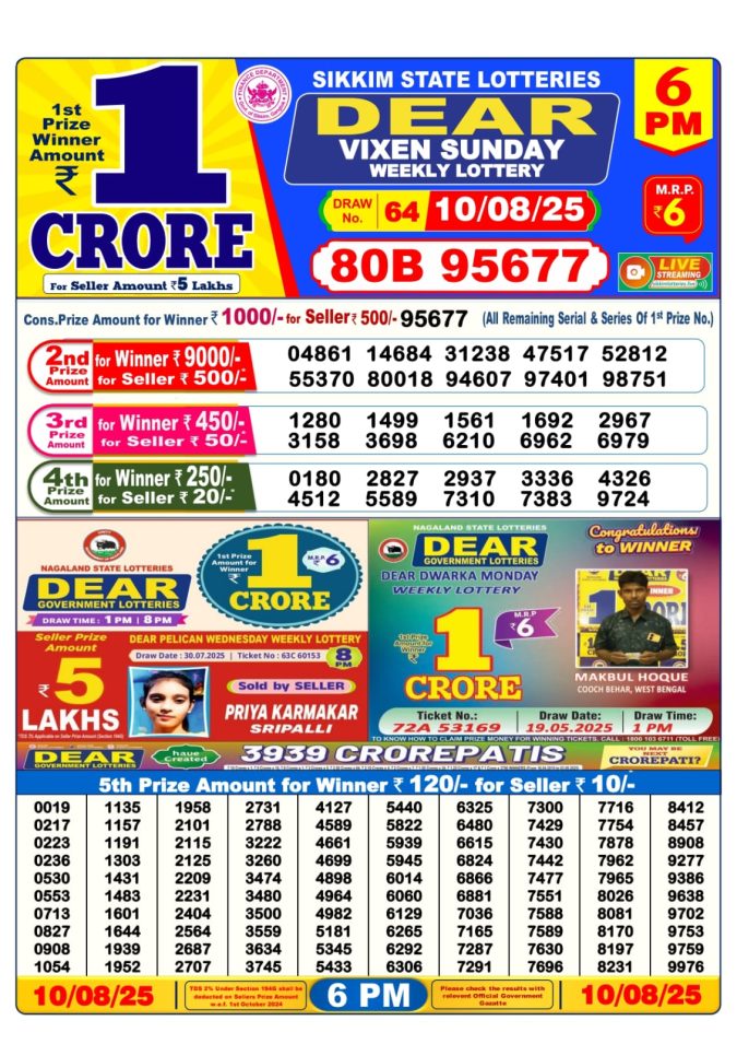 Dear Lottery 6pm Results 10.08.25 Leave a Comment on Dear Lottery 6pm Results 10.08.25 Spread the love