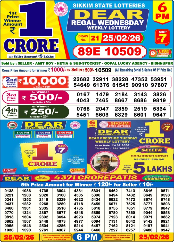 Dear Lottery 6pm Results 25.02.26 Leave a Comment on Dear Lottery 6pm Results 25.02.26 Spread the love