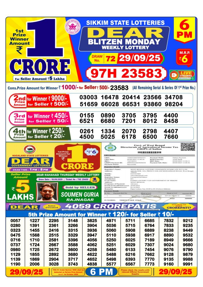 Dear Lottery 6pm Results 29.09.25 Leave a Comment on Dear Lottery 6pm Results 29.09.25 Spread the love
