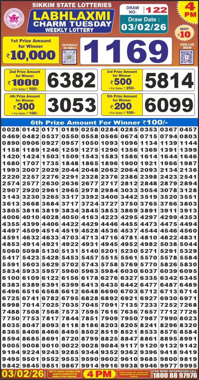 Labh Laxmi Lottery 4pm Result 03.02.26 Leave a Comment on Labh Laxmi Lottery 4pm Result 03.02.26 Spread the love