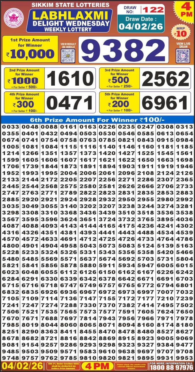 Labh Laxmi Lottery 4pm Result 04.02.26 Leave a Comment on Labh Laxmi Lottery 4pm Result 04.02.26 Spread the love