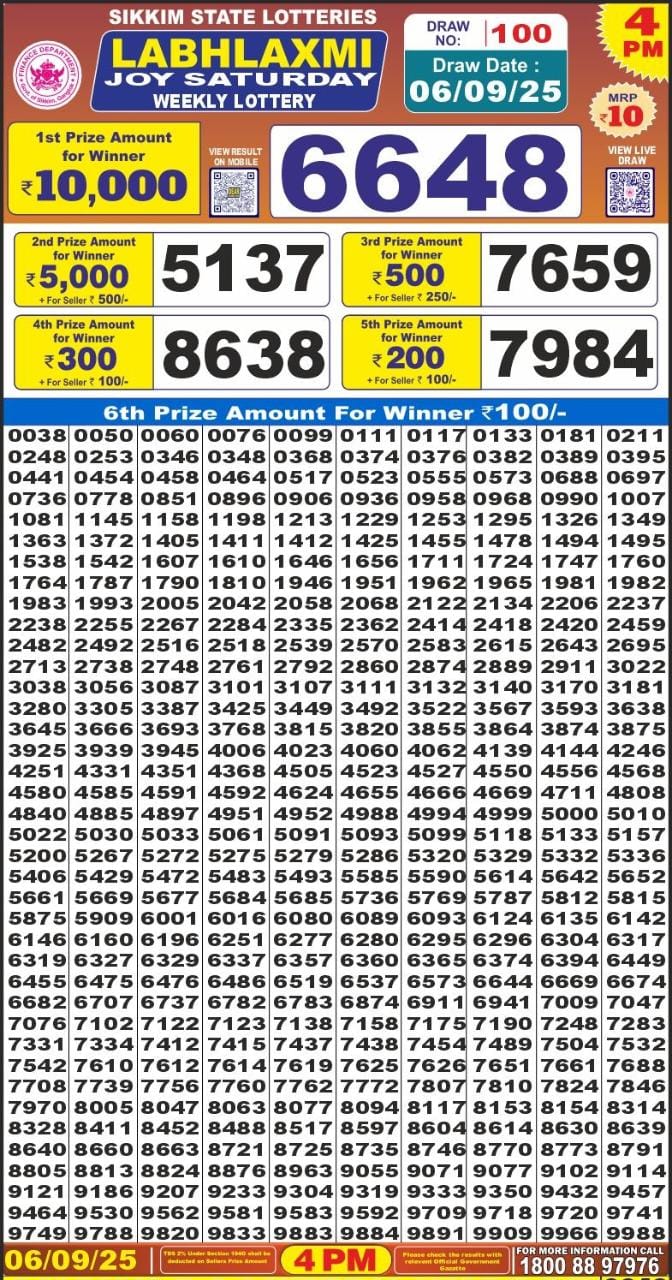 Labh Laxmi Lottery 4pm Result 06.09.25 Leave a Comment on Labh Laxmi Lottery 4pm Result 06.09.25 Spread the love