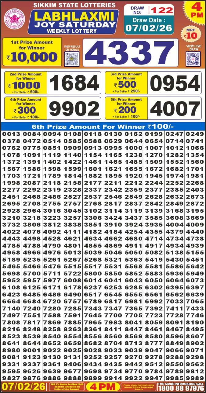 Labh Laxmi Lottery 4pm Result 07.02.26 Leave a Comment on Labh Laxmi Lottery 4pm Result 07.02.26 Spread the love