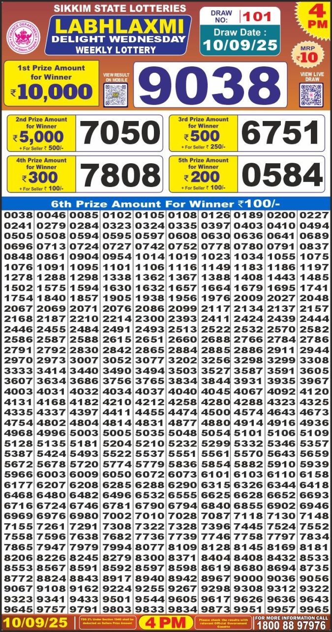 Labh Laxmi Lottery 4pm Result 10.09.25 Leave a Comment on Labh Laxmi Lottery 4pm Result 10.09.25 Spread the love
