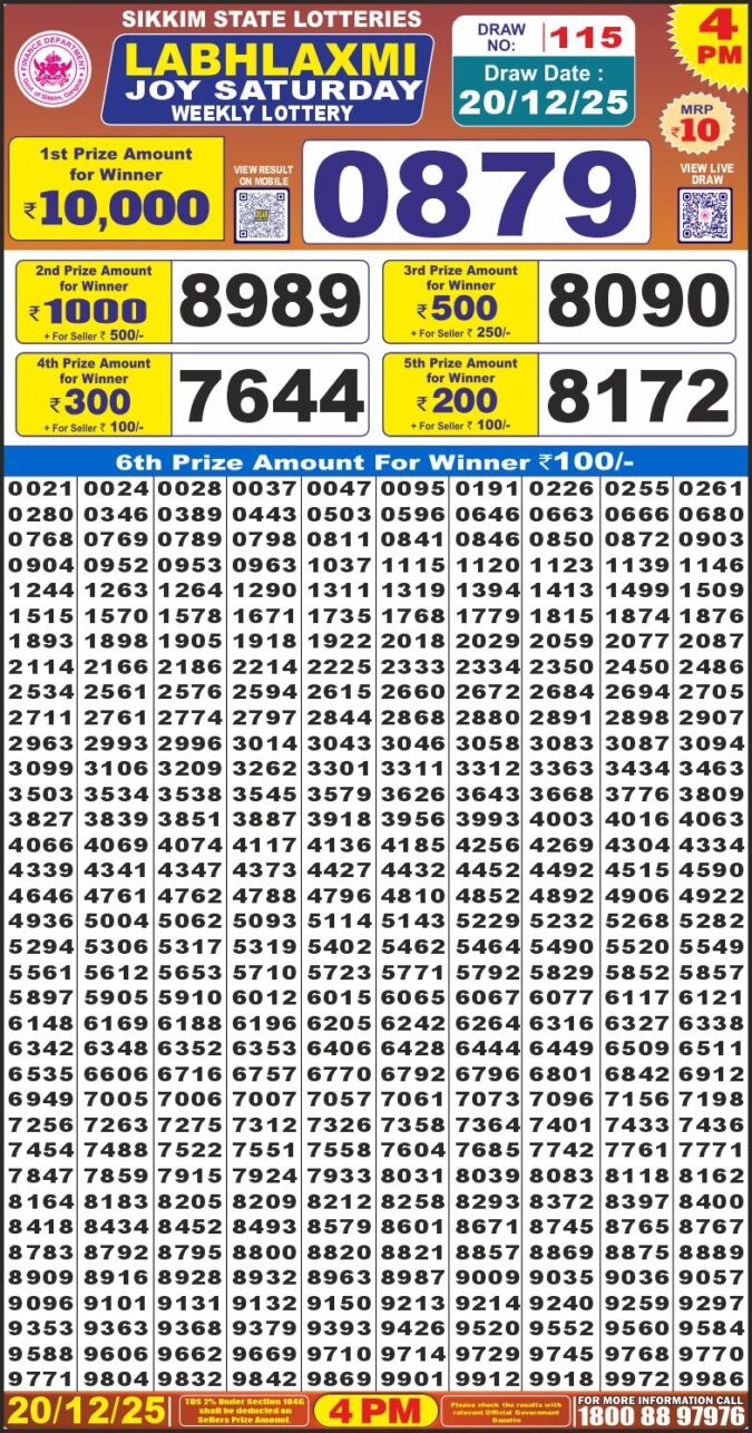 Labh Laxmi Lottery 4pm Result 20.12.25 Leave a Comment on Labh Laxmi Lottery 4pm Result 20.12.25 Spread the love