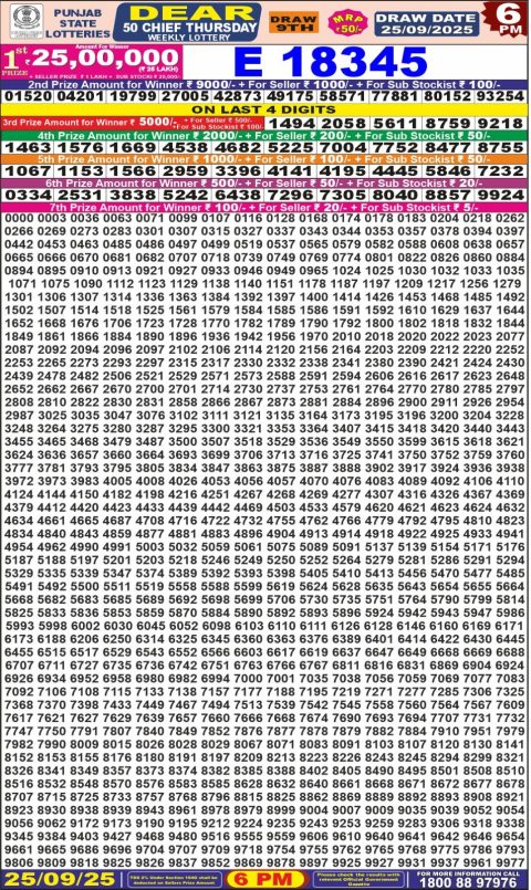 Punjab State Dear 50 Lottery 6pm Result 25.09.25