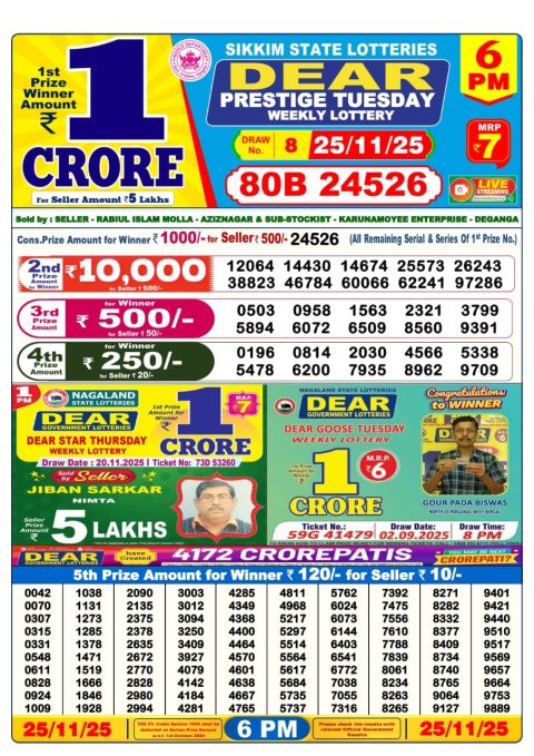 Punjab State Dear 50 Lottery 6pm Result 25.11.25