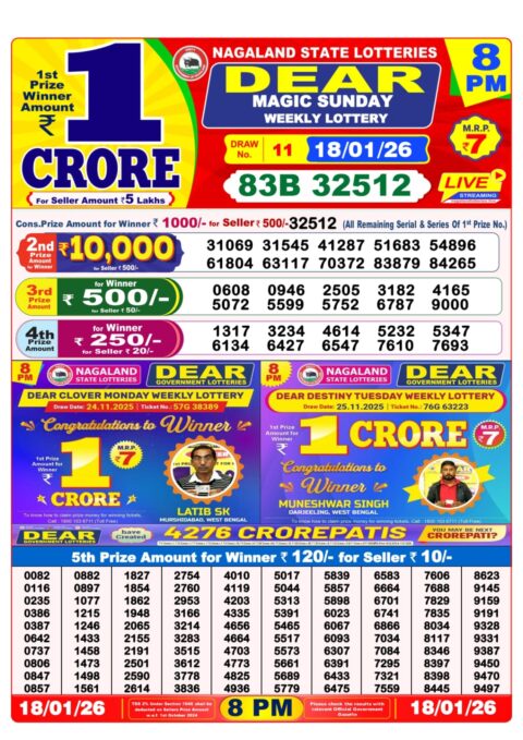 Punjab State Dear 50 Lottery 6pm Result 18.01.26