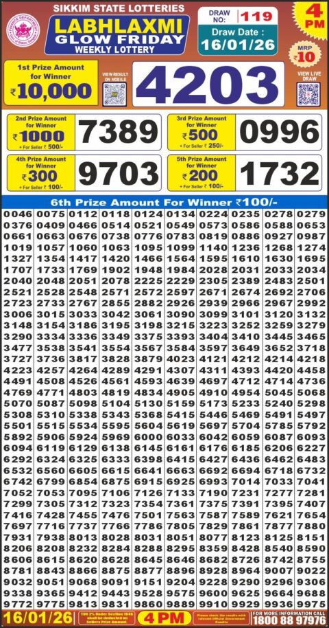 Labh Laxmi Lottery 4pm Result 16.01.26