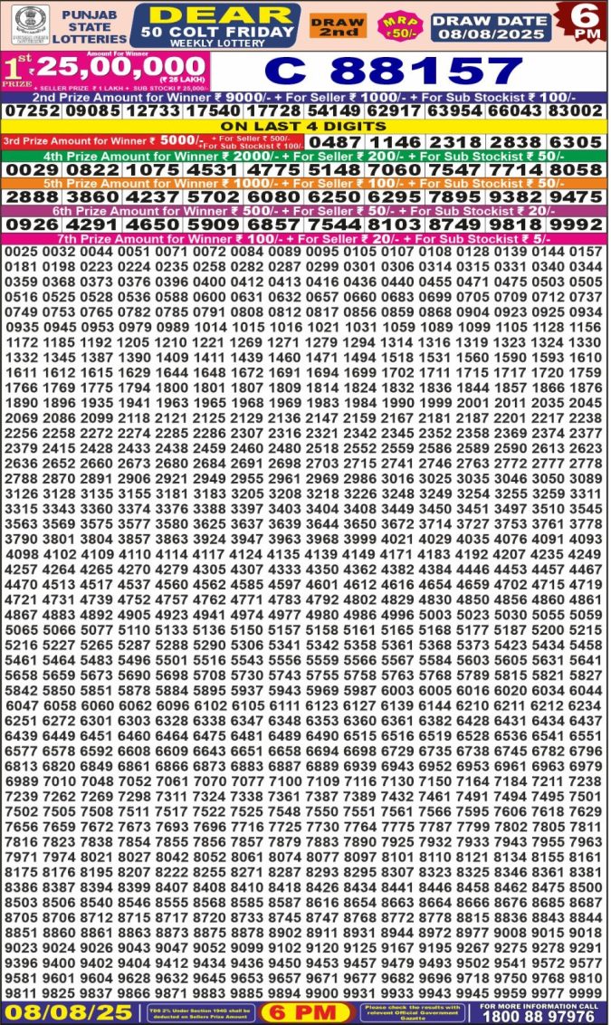 • Punjab State Dear 50 Lottery 6pm Result 06.10.25