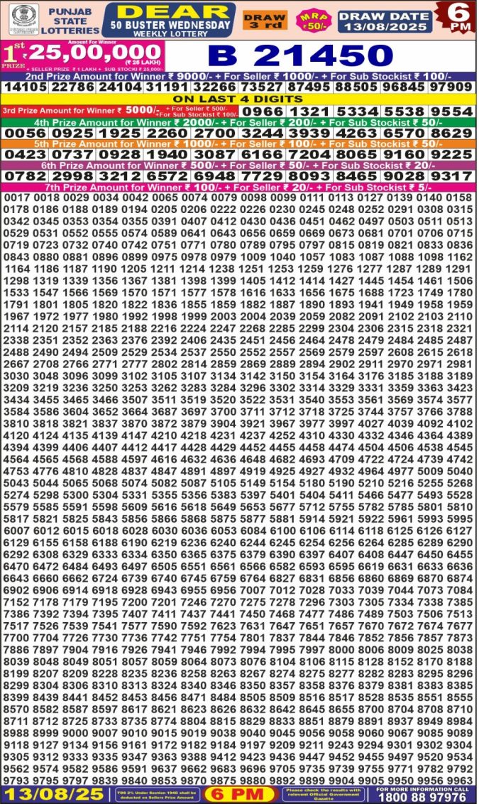 Leave a Comment on Punjab State Dear 50 Lottery Result 13.08.25